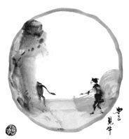 At the eighth stage, "person and ox both forgotten"[jingy gub], we come to realize the fact that this "I" (person), which has been seeking, and the essential self (ox), which has been the object of our search, did not exist at all. It is the same fact manifested in D´gen Zenji's statement, "My body and mind have fallen away," which he presented to his own master, TEND Nyoj´ Zenji [1162-1227], after he had come to great realization upon hearing the words of his master, "Practicing Zen is the falling away of body and mind." You have forgotten yourself, you have forgotten all others, you have forgotten everything; there is only one round circle without any substance whatsoever. This is what is meant by "person and ox both forgotten."